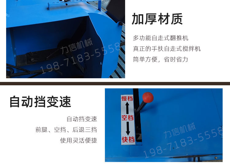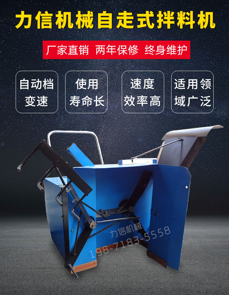 力信機(jī)械食用菌電動(dòng)拌料機(jī),新款自走式拌料機(jī)價(jià)格 木屑翻棧機(jī)食用菌機(jī)械廠家直銷.是國(guó)內(nèi)目前設(shè)計(jì)比較精巧可靠的拌料翻棧機(jī)械。它吸收了眾多拌料機(jī)械的優(yōu)點(diǎn),同時(shí),化繁為簡(jiǎn)推陳出新,將機(jī)械的各種功能,集中在同一主機(jī)上。主傳動(dòng)、付傳動(dòng)、自走離合機(jī)構(gòu)以及主配重輪,都集中在一臺(tái)特殊設(shè)計(jì)的減速機(jī)上。是一款臥式拌料機(jī),自動(dòng)化程度高,操作時(shí)只需一人扶扶手把握方向即可,操作簡(jiǎn)單省力。加寬自走輪、主甩輪采用整體鑄鋼配件,強(qiáng)度高。機(jī)架為整體框架式,前機(jī)殼為加厚鋼板無(wú)縫焊接,機(jī)子平衡靈活、進(jìn)退自如。工作時(shí)原料就地棧積好后,機(jī)器通過(guò)料耙送入喂料輪再通過(guò)離心風(fēng)輪加速拋出出料口,在經(jīng)過(guò)運(yùn)料的同時(shí)實(shí)現(xiàn)多次攪拌混合,使得原料攪拌更加均勻一致。